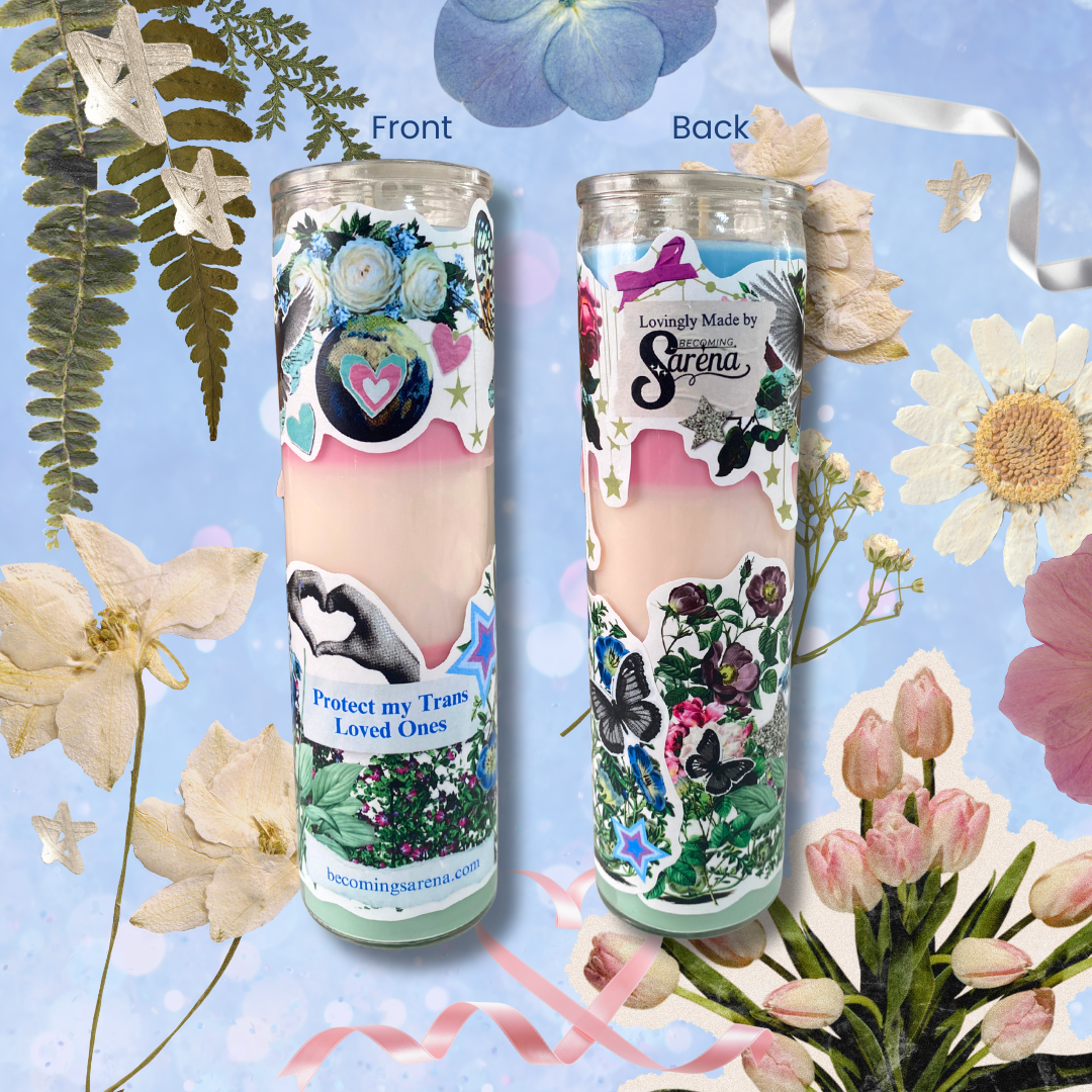 Protect My Trans Loved Ones Candle: Provide protection, love, and goodwill, for the Trans people in your life. Protect My Trans Loved Ones candle sends positive vibrations to your intended loved-ones or can be used for the general protection for the Trans-community at large. Use this candle to raise the vibration during times of crisis, as well strengthen yourself as an ally. Whether you're trans yourself, a parent, or friend the Protect My Trans Loved Ones candle can help.
